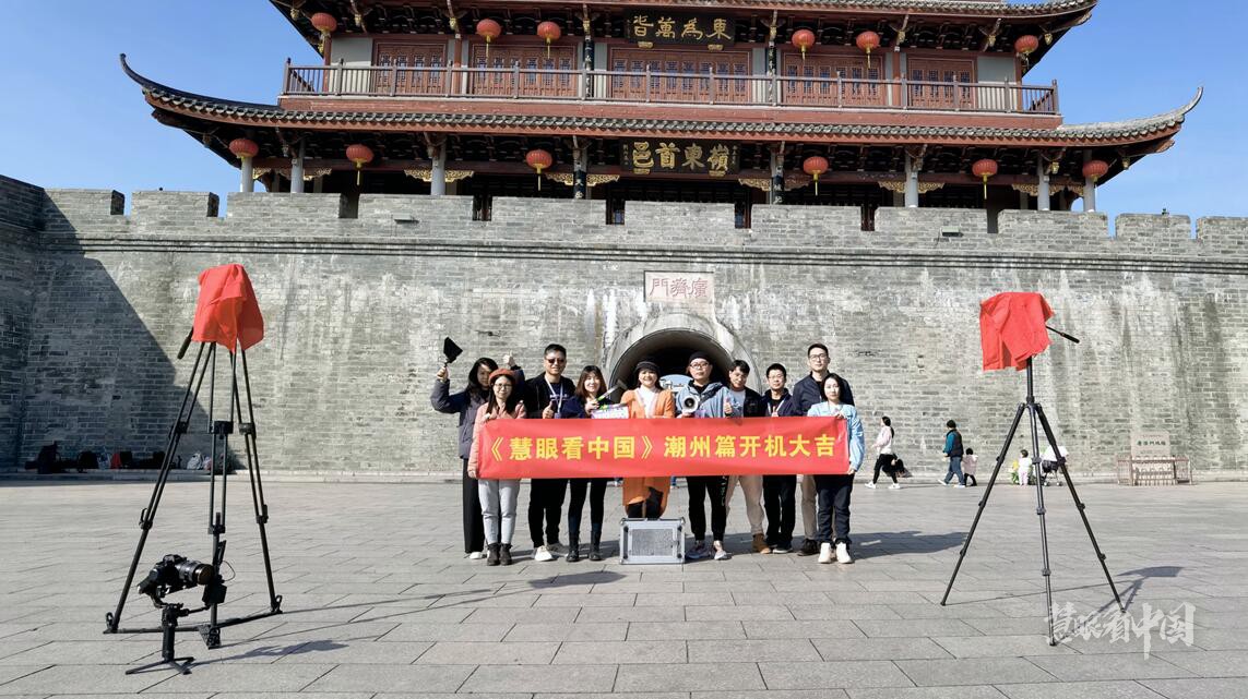 2021年12月28日上午,《慧眼看中国》纪录片摄制组的主创人员,包括旅行达人慧慧,制片人、导演胡凯,导演宋飞、葛倩薇,编剧徐舜希、何雅婷等10余人在广东省潮州市湘桥区广济门城楼前合影留恋,宣告城市纪录片《慧眼看中国》潮州篇正式开机拍摄。